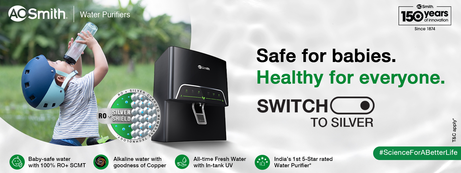 Stylishly crafted, elegantly designed, the A.O.Smith X6+, provides a Healthy life with Elegant Style. A.O. Smith X6+ provides Baby Safe with double protection of 100% RO+ SCMT. The Alkaline Min-TECH filter retains natural taste with essential minerals and provides alkaline water, so that you get water the way it was meant to be fresh, clean and good for you.