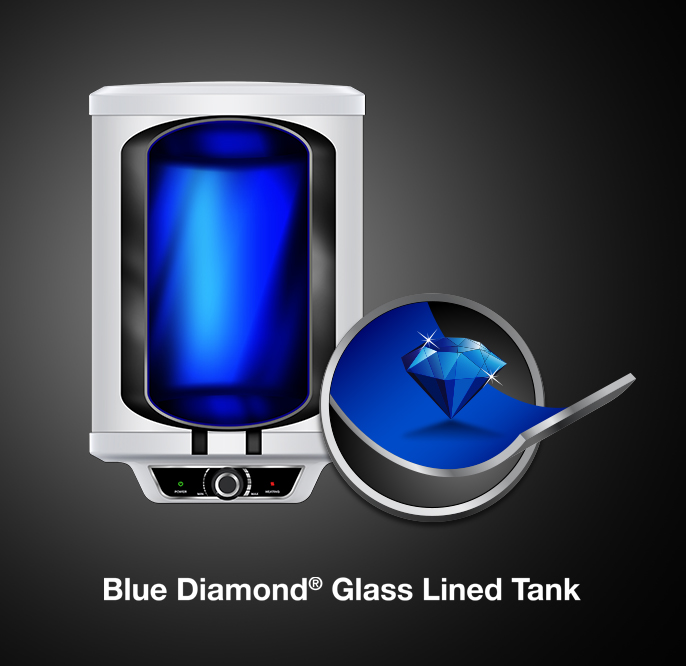 Longer life in toughest water conditions with Blue Diamond® glass lined tank.
