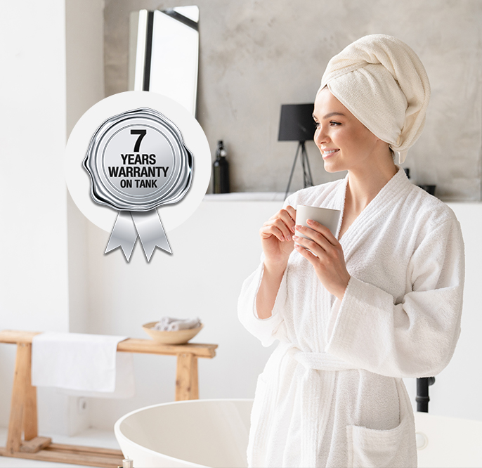Equipped with Blue Diamond Glass Lined tank, Elegance Prime Water Heaters deliver high performance. Peace of mind is ensured with a 7 Year warranty on Tank. Elegance Prime Water Heaters feature premium quality rust proof outer body. Innovative RRID Technology delivers enhanced hot water output.