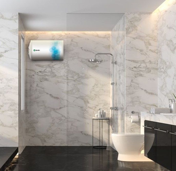 3. View and explore the Elegance Slim-LHS Storage Water Heaters for Bathroom that appears on the wall.
