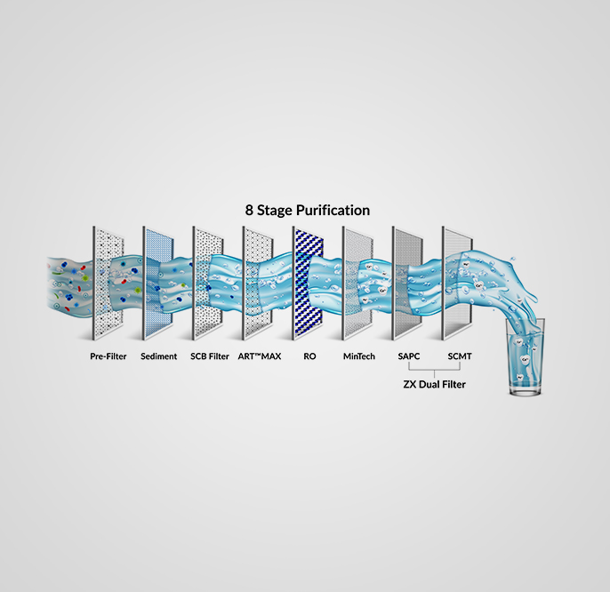 The 8-stage purification with double protection of 100% RO+ Silver Shield gives you water so pure, it is safe even for babies . Silver Shield powered by Silver Charged Membrane Technology(SCMT) is an additional stage of purification to prevent any potential secondary microbial contamination post RO purification.