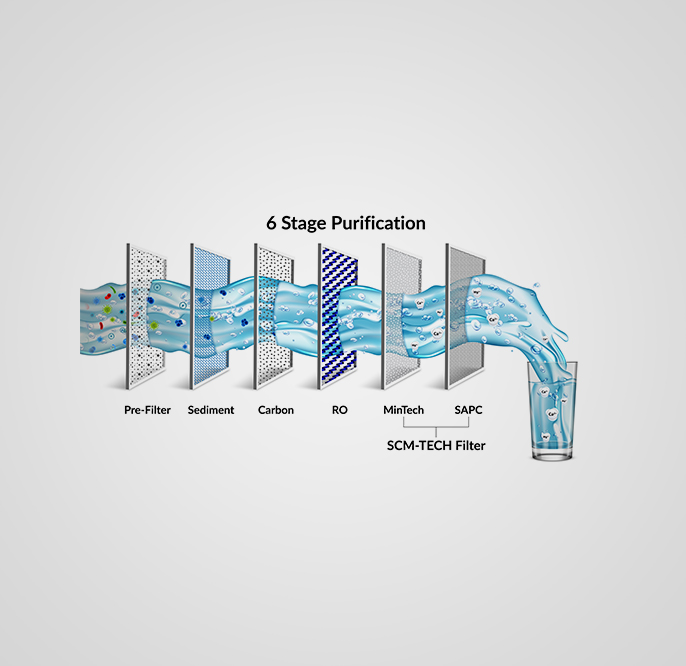 Clean and pure drinking water with SSM technology (SIDE STREAM RO MEMBRANE)- Suitable for water with low and high (upto 2000 ppm) TDS. Wastes less water and improves pure water recovery.