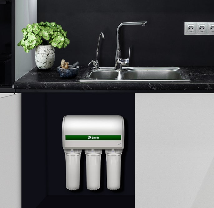 Under the counter, over the top. Give your kitchen an international look with A.O. Smith X5+ RO Water Purifier with MIN-TECH (Mineralizer technology). It uses our patented Side stream RO membrane, which further improves the water recovery. X5+ RO Water Purifier works under the principle of RO (Reverse Osmosis) technology. Purified water is collected for drinking in a storage tank and impurities in the water are flushed through the drain. X5+ keeps your kitchen clutter-free, complements your kitchen interior while ensuring you get 100% RO purified water with all the essential minerals in it.