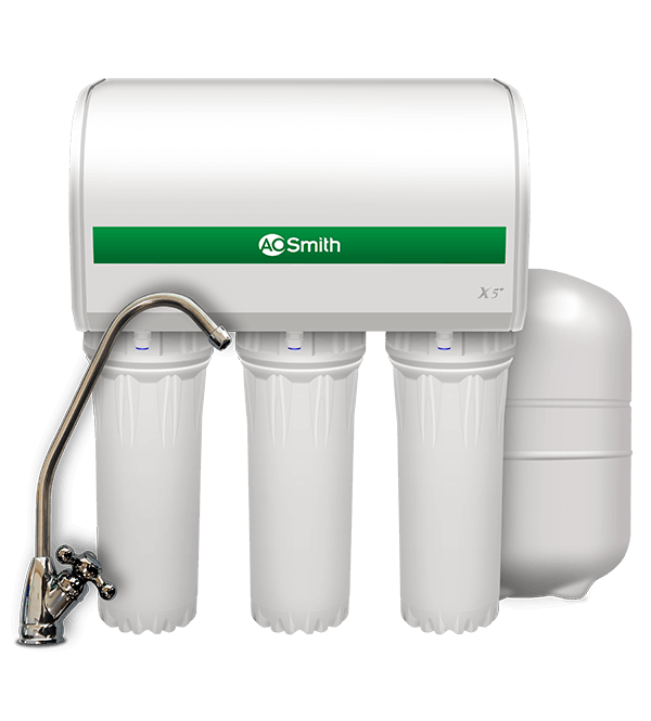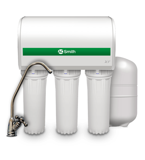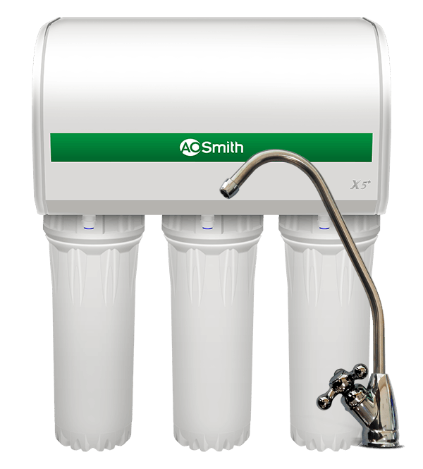 Healthy drinking water with 6-stage purification technology: Pre-filter + Sediment filter + Pre-Carbon filter + RO Membrane + SCM-TECH(Silver Activated Post Carbon) + MIN-TECH. In A.O. Smith X5+, 100% of the water passes through the RO membrane, with no bypass of impurities.