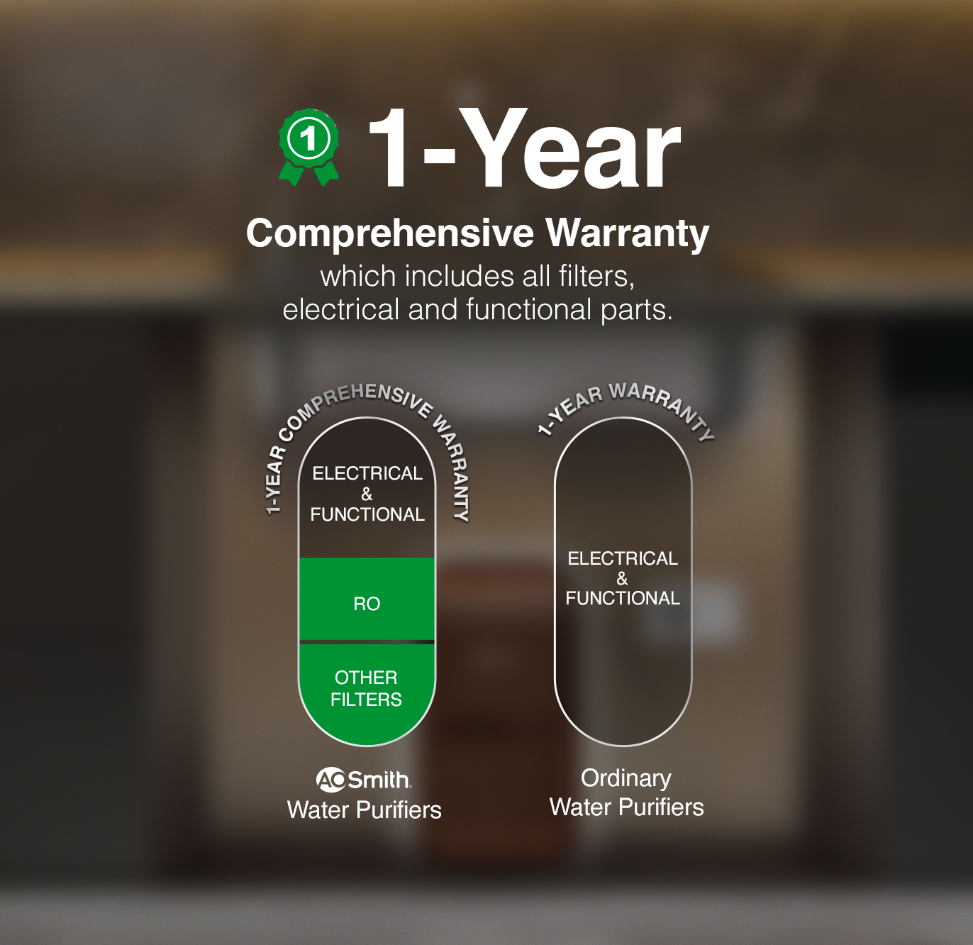 To ensure peace of mind , Z2 Pro Vogue (Walnut) comes with 1 year comprehensive warranty that covers all filters, RO Membrane and electrical parts. No hassle, no worries.