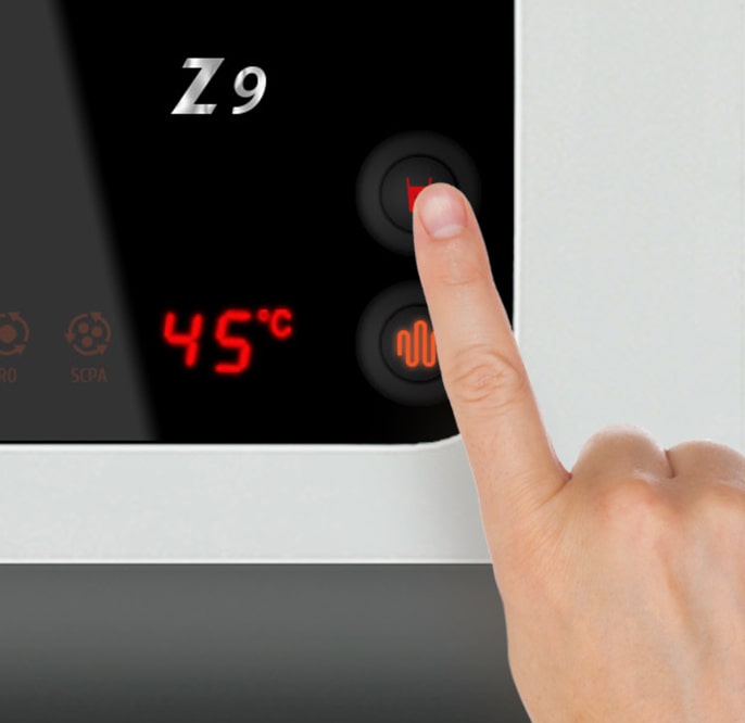 Powered with the path-breaking RO + Silver Charged Membrane Technology, Z9 gives you 100% RO purified, baby-safe water, thanks to its 8-stage purification process. It is also equipped with an electronic faucet for dispensing hot water at the press of a button, with temperature options of 45°C and 80°C. It is designed to complement your kitchen decor.