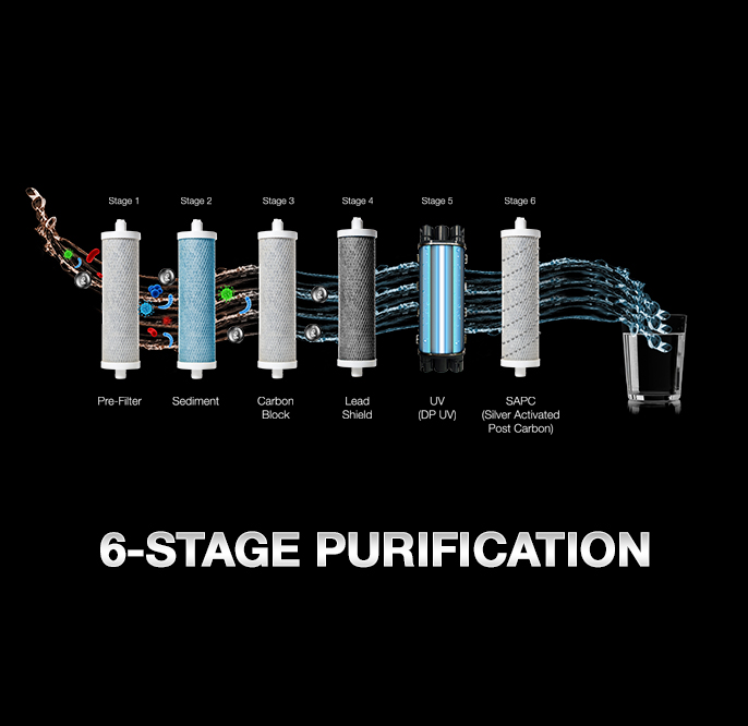 Healthy drinking water from 6 stages of purification with triple protection of UV+SAPC+Lead Shield technology